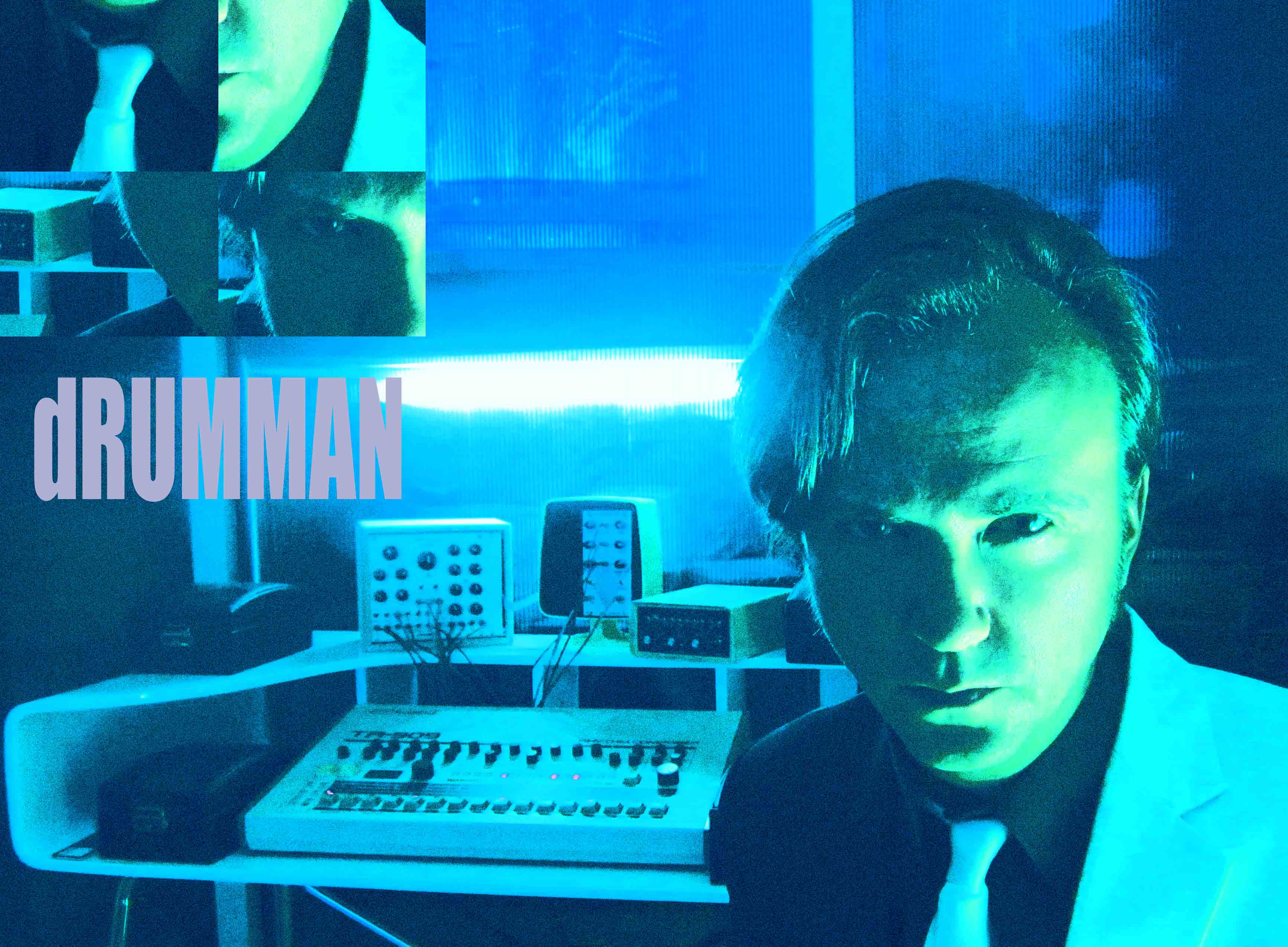 3. LIVE as dRUMMAN -an improvised technojam. Perfomancewise it's a a statement on liveperfomances where the artists spend most of their time staring at a computer screen: I am taking it back to the roots: dRUMMAN is completely hardware based with drummachines, analogue sequencers and synths all programmed and mixed live on stage.